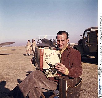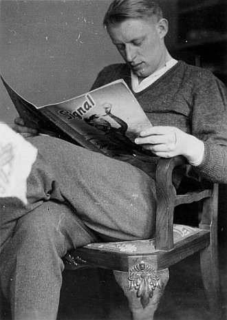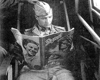 Signal correspondent Benno Wundshammer reading a copy of issue number 20/1941 somewhere in the North African theater of war.