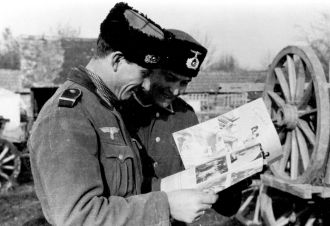 1. Two members of a Cossack volunteer formation with copies of the Russian edition (issue number 9/1943).